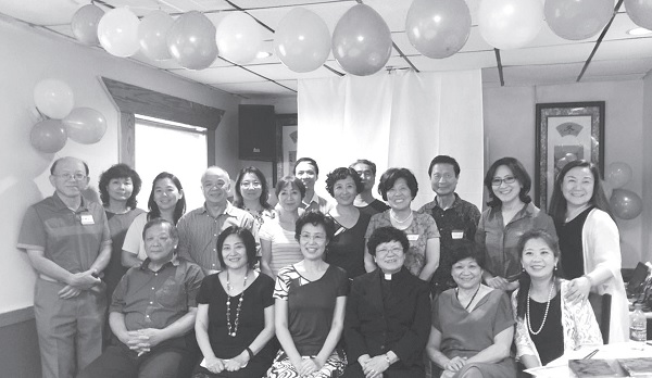 ▲张陵兮牧师(前排右三)牧会20年感恩餐会合照。