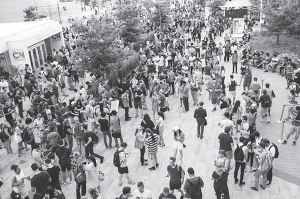 ▲到处都是抓宝的人潮—加拿大多伦多的群众聚集在CN大楼前抓宝。