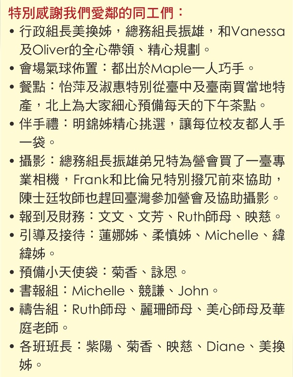 This camp also broke even. I would like to express my special thanks to every alumni who has made selfless contributions. I firmly believe that God will repay you!
