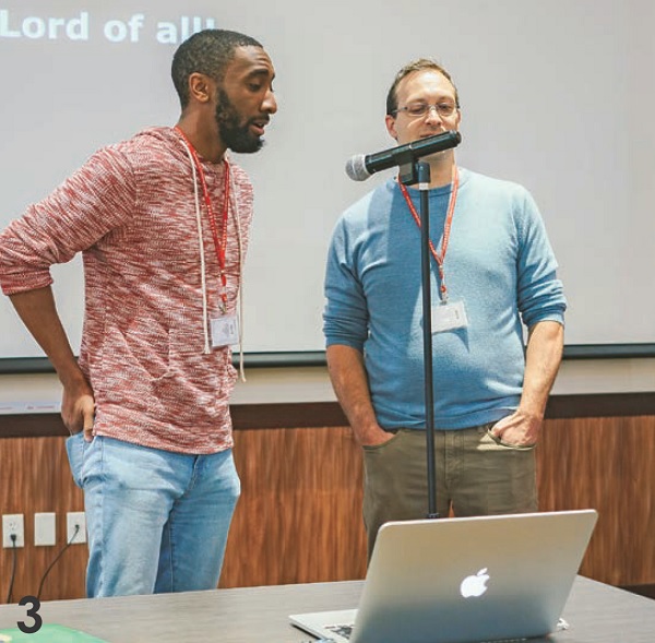 與會者來自美國各州,也包括董事團隊及同工,在緊湊行程中,領受、反思、討論。KRC創辦人高俐理帶領早晨的聚焦時間,主日敬拜由楊均安(Andrew Yang)分享耶穌榮耀進聖城的信息。還有一堂「聆聽神」工作坊,本刊英文單元三位同工:Jonathan Ho、Matt Reffie、Brandon Morgan,引導大家從默思讀經、默思札記,讓心安靜,感受與神之間的團契。