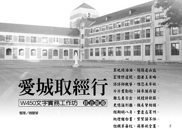 The song "Returning from the Literary Camp" by classmate Wang Zhengxing describes the Literary Camp workshop held from July 29 to August 2, 2005. A group of "beauties" (Chinese in the United States) who believed that there was still a place for "literacy" were invited by the female leader Gao Lili to go to the literary camp workshop in Allentown, PA to learn from the experience. I hope that after obtaining the scriptures, I can serve the Kingdom of God and one day return to heaven in glory.