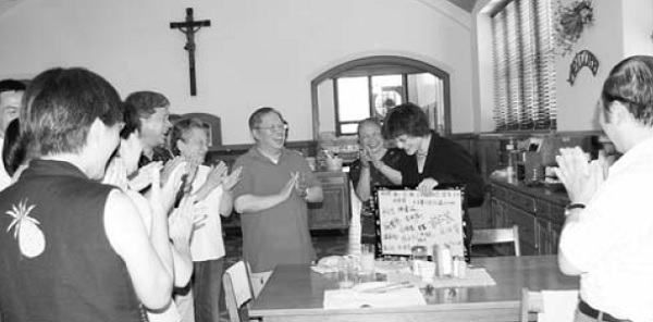 ▲Students in the workshop gave teacher Li Li a surprise thank you for her hard work with an extra-large card.
