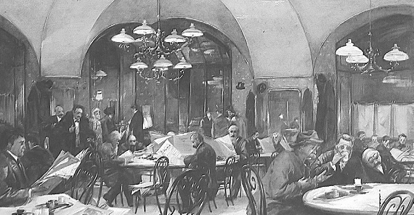 在談論中激發火花的例子,在十九、廿世紀的西方簡直不可勝數。十九世紀歐洲思想之都維也納正是「天才成群地來」的地方,維也納城大量的咖啡館成為繁星們的養成之所。當時維也納的小咖啡館,點一杯咖啡可以坐一天,甚至信件可以寄到咖啡館,晚禮服也可以寄放在那裡。譬如維也納的Café Grien-Steidl 咖啡館就有包括了茨威格等大人物的常常留駐。