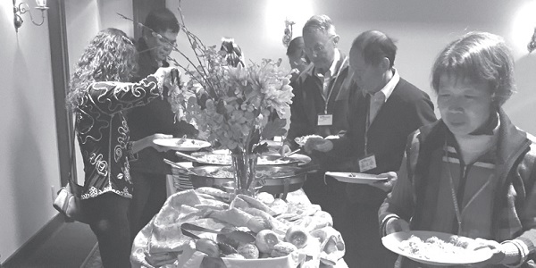 年輕講員:「不用,我吃葡萄就好了!」年輕人上臺,邊分享、邊吃葡萄,還沒講完,葡萄快吃完了!長輩注意到了,再送上一盤!