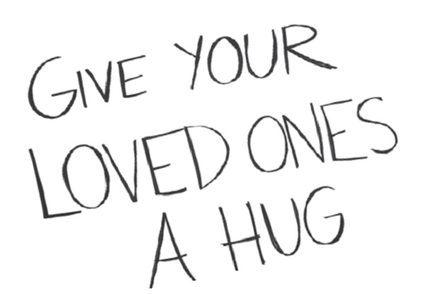 ▲突來的槍擊案,提醒大家要珍惜親人,有人自製「別忘給你愛的人一個擁抱」的標語。