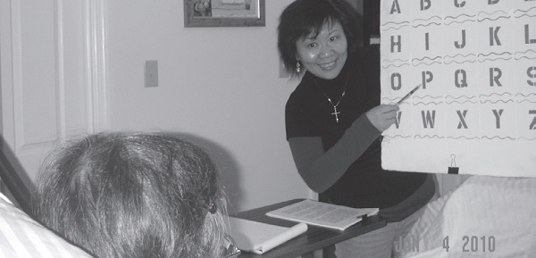 Although I was prepared in my heart, I still couldn't accept the bad news. From January 2009 when I accompanied her back to Taiwan to handle her ministry, to when I started helping her write (ghost-write) books at the end of May of the same year, it was an extraordinary 12 months. I watched her speech slow down, go through gastric tube surgery, her respiratory index drop... to the publication of her first audio book "Single Parents Are Not Alone"; she went from having slurred speech, to being unable to speak in sentences, and in the last two months, she... Even I, the only person who could understand her, could only use Roman pinyin and English alphabet boards to help her write.