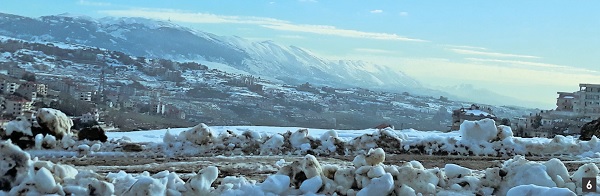 6. The snow scene on the way to Bekaa, overlooking the top of Mount Hermon.