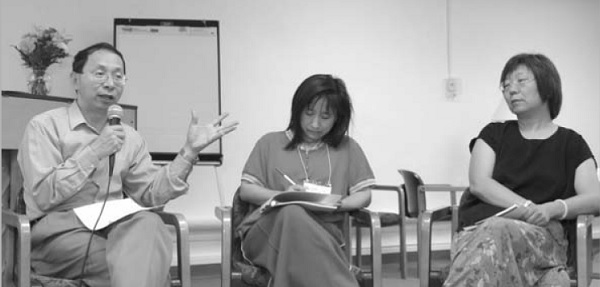 ▲Teacher Su Wen’an (first from left) demonstrates interviews with editors born in the literary camp.
