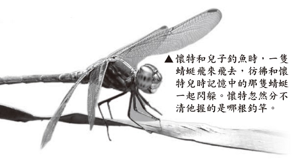 ▲While White and his son were fishing, a dragonfly flew around, as if dodging with the dragonfly in White’s childhood memory. White suddenly couldn't tell which fishing rod he was holding.