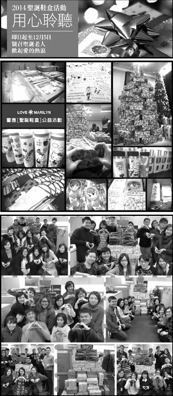 The "Auntie's Love Stall" event will benefit disadvantaged groups with the proceeds from the charity sale of second-hand clothing and supplies. The "Christmas Shoebox" activity puts warm clothes and Christmas gifts in shoeboxes and gives them to children in rural areas. Over the years, the number of 70 shoeboxes in the first year has increased year by year, and a total of 11,600 gifts were received in 2014. . The audience responded enthusiastically and gave back to the community with love, which exceeded their imagination.