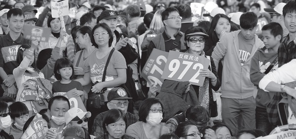 2013年,多元成家草案在臺灣社會連月話題不斷,11月30日更延燒整條凱達格蘭大道(凱道),反對該草案的「下一代幸福聯盟」(幸福盟),以及支持多元草案的「臺灣伴侶權益推動聯盟」(伴侶盟),正反擁護者於當天走上街頭。