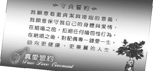 ▲The vow card is as big as a credit card and should be kept in your wallet to remind you: Be chaste before marriage and keep your promise after marriage.