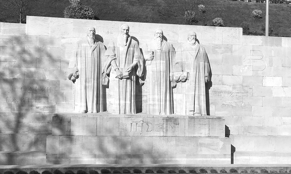 ▲The wall of statues of Calvinist reformers at the University of Geneva.