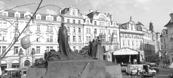 ▲The statue of Czech reformer and martyr Hus in downtown Prague.