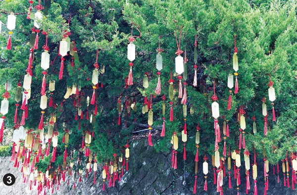 3.善男信女掛在樹枝上的紅穗金色薄籤,許多在雨淋日曬中,褪去了顏色。