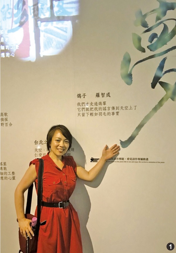 1. In the interactive exhibition in the Chiang Kai-shek Memorial Hall, touch the screen with your hand to display the verses you touch on the wall. (Photography: Ruan Xuanmei)