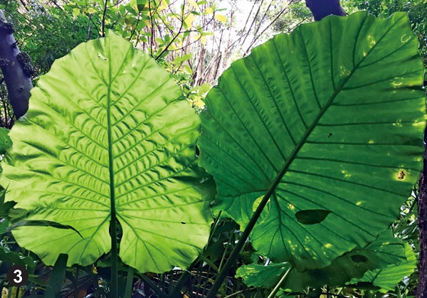3.臺灣到處是青山綠樹,圖為富陽生態公園裡的巨大葉子,是巨大蝸牛的樂園。