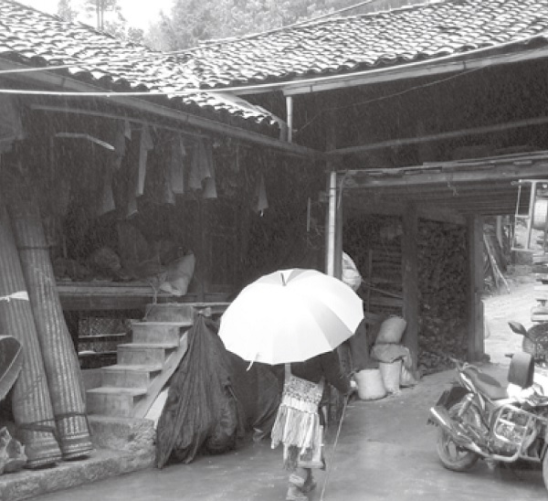 濛濛細雨一直下著,到處都濕漉漉的。在十分偏僻的山村裡,這雨又被稱為山雨。雖然是盛夏,卻寒意盪漾,我們每天外出都打著傘,甚至從住的閣樓去夥房、去洗漱間、去廁所,我也打著傘,因為怕淋濕了衣服沒得換。但當地的大人小孩在山雨中走來走去,卻很少有打傘的,有的居然還光著腳……