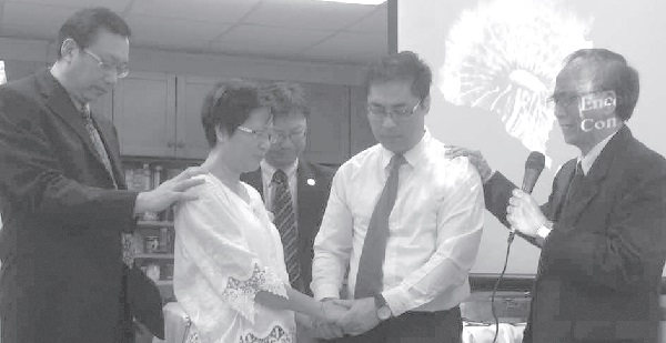 ▲The Qing’en Church of China Mission Society blessed and prayed for Brother Situ and his wife at the sending ceremony. Pastor Kong Qingchang (first from left): "Our church, which has been established for less than a year, can send its own missionaries. This is God's great grace."