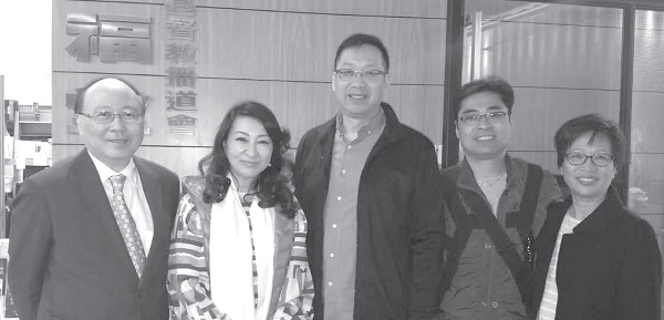 ▲Priest Kong Qingchang (middle) and sister Jiang Liping (second from left) of New York Chinese Propaganda Association’s Qing’en Church took a group photo with their brothers and sisters.