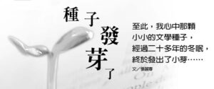 In the summer of 2000, my husband and I went to the Grand Canyon. I was amazed by the magnificent mountains along the way. Up to the observation deck, it was suddenly opened up...The seeds sprouted