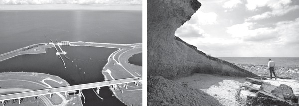 ▲美麗的歐基秋碧湖。 ▲2005年被颶風威爾瑪掏空的歐基秋碧湖堤防。