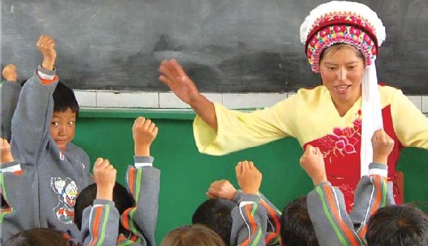 ▲中國石龍白族過去只有口語,如今世界少數民族語文研究院(SIL International) 協助推動學前母語及官語的雙語教育。
