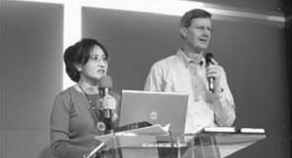 ▲和平使者創始人謝懇德(Ken Sande)律師(右立者)與擔任口譯的本刊創辦人高俐理,合作無間,只盼和好的福音,遍傳華人的教會。