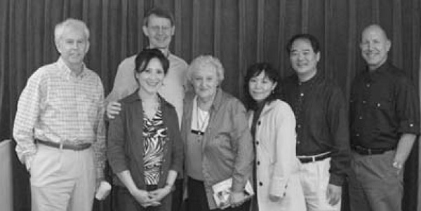 ▲救世傳播協會(ORTV)創辦人彭蒙惠(前排左三)參與並肯定和平使者事工。前排右起,和平使者事工(PM)同工何杰米;ORTV會長洪善群;福音協進會公關資源處處長鄭夙珺姊妹;左二高俐理;左一PM國際事工部主任紀期;後立者,PM創辦人謝懇德。