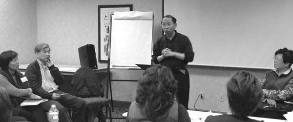 ▲本文作者王秀華(右一)是紐約聖教會來參加KRC退修會的「三華」之一。