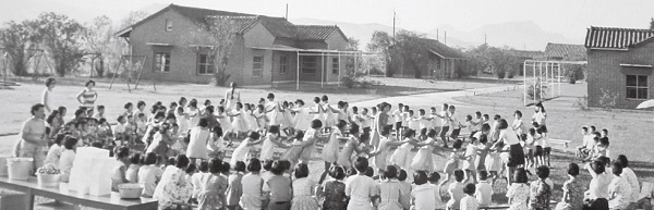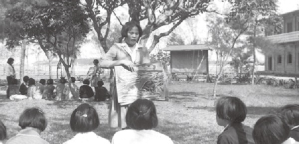 ▲保姆學校於1956至1983年間設立,培育原住民女孩返鄉擔任幼稚園老師,當時芥菜種會支付379位老師薪資,於250間長老教會開辦幼稚園,照顧兒童多達8000名。圖為花蓮保姆學校學生在練習教課。