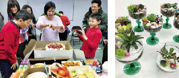 ▲小天使慶祝感恩節。 ▲特殊孩子們的盆栽作品。