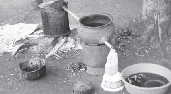 ▲當地人謀生不易,不少人在路旁釀起私酒出售。