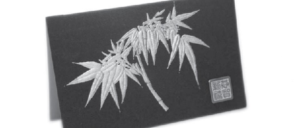 深綠色絲絨面上,刷下一片金色竹林,竹尖像四面放射的光芒,飄逸流放地浮動⋯⋯我彷彿走入竹林裡,聽見那隨風搖曳的「濤聲」。