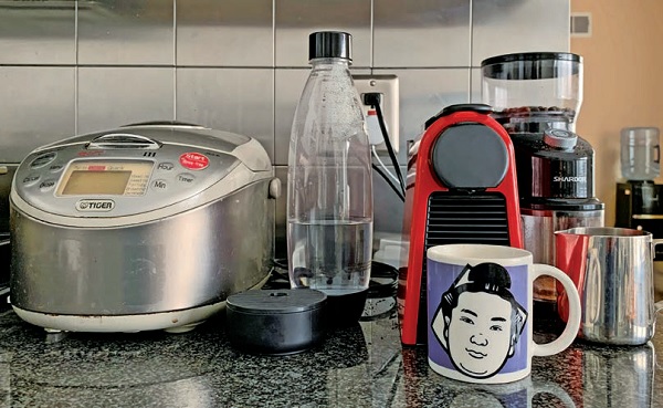 ▲廚房變成多功能空間,常常電鍋、咖啡機、氣泡水等同時進行的工作/休閒空間。