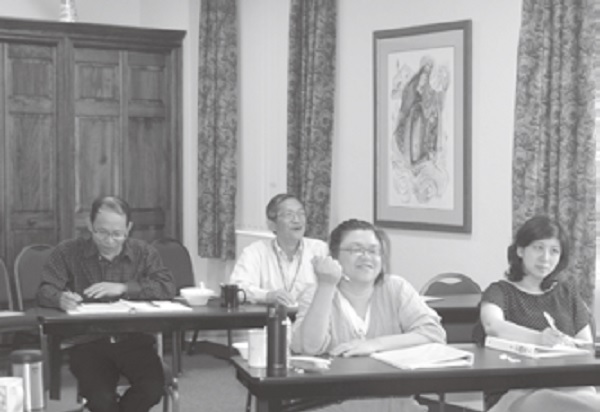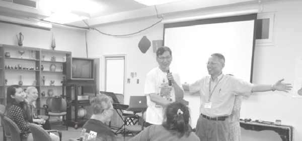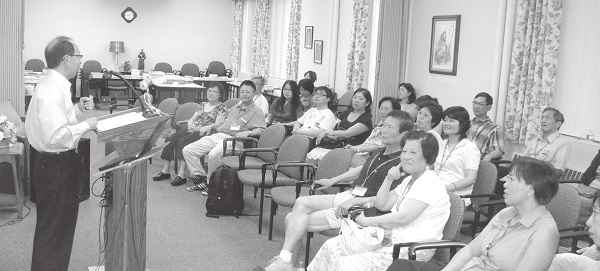 ▲蘇文安老師在第一梯次和大家同上莫非老師的課;他的四哥,為此營會擺設書攤的使者出版部經理蘇文哲也歡喜共學。
