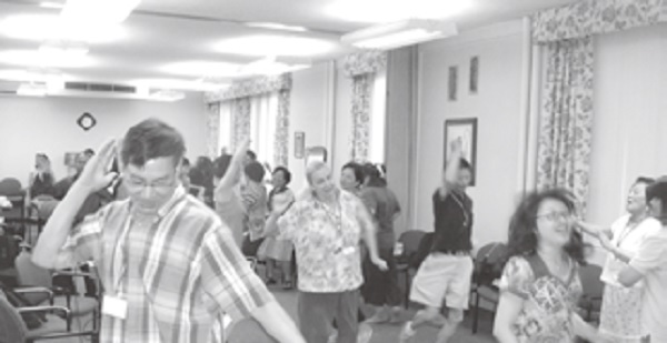 ▲舞蹈營Betsy老師帶大家擺動肢體敬拜神,充滿歡欣的敬虔。
