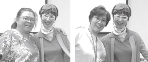 ▲兩位在不同藝術領域的老師—郭小莊老師與周蘭惠老師,彼此相惜。 ▲同學許芸興奮地與郭小莊老師合影。