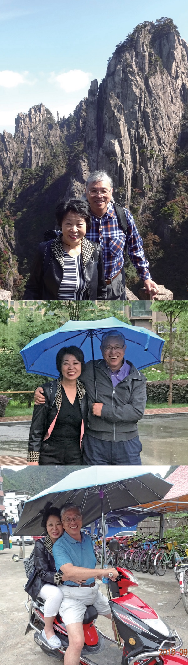 這些年來,我們去峨嵋山、黃山,爬山間我摔了他扶我,他摔了我扶他。去以色列,兵荒馬亂的地理位置他開車,我看地圖。我每一低頭看圖,他就錯過一個出口。我們去約旦,看世界遺產佩特拉谷古城,黃土山路走到腳軟,回程是他抓我像抓小雞一樣拎著我走回。去桂林,兩人牽手坐舟遊湖。在陽朔,他騎著摩托車載我遊「十里畫廊」……。
