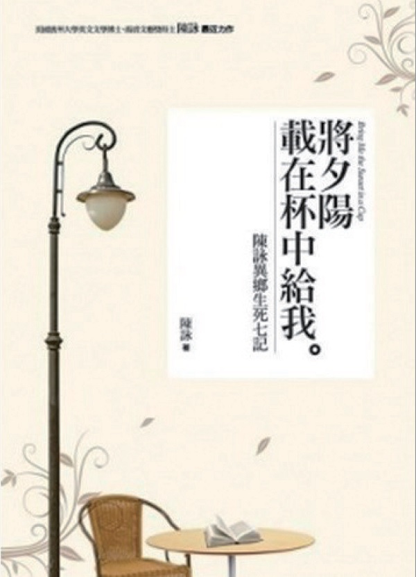 翻出多年前讀過的《將夕陽載在杯中給我》一書,是臺灣留美的一位基督徒文學博士作者陳詠所著(臺灣主流出版)。我這次一口氣讀完。多年前對陳詠敘述先生病發到過世六年間的描寫,不忍卒讀,且覺得再怎麼用幽默的口氣寫,都是一場悲劇(陳詠的文筆一向刁鑽靈巧,幽默活潑)。