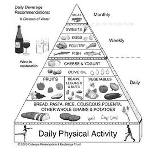 專家公認地中海沿岸的飲食習性是最健康的典範,因為他們根據聖經的飲食觀發展而成。參照附頁的聖經飲食圖。近代的USDA(美國國家農業部簡稱,U.S. Department of Agriculture )食物金字塔也參考此圖而做成。