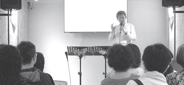 而「藝文沙龍」則是此次校友會特別安排的活動,由三位校友作家聯袂分享。第一位講員也和「道聲」頗有淵源。蒙召領受宣教異象,現於華神就讀的KRC校友吳俊德弟兄,曾以武俠小說《太平記》榮獲「道聲百週年慶」徵文小說類首獎,當天帶著妻子與可愛的女兒一起出席。吳弟兄從前就愛讀武俠小說,熱愛寫作,攻讀中國文學。他覺得武俠是專屬華人的一種文體,而且廣受歡迎,如果能用武俠小說反映基督徒的生命歷程與價值觀,可望發揮較大的影響力。現在有了孩子,雖然忙碌,暫時無法創作長篇小說,卻也讓他有新的領受,開始投入散文創作。