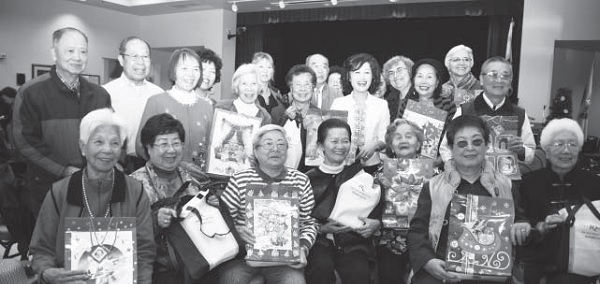 ▲身为第一代移民,苏王秀兰(立者右三)投注无可度量的心力及时间于新移民社群。图为2011年所举办的敬老送暖活动。