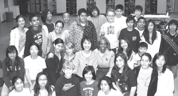 ▲苏王秀兰(二排左五)于1997年创办核桃学区华裔家长会。她建议教会适当引导、教导新移民家庭中的青少年,帮助这些孩子长成健全的个人。