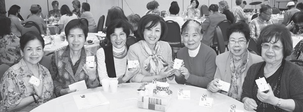 ▲苏王秀兰(右四)鼓励信徒与教会真切关怀移民家庭,藉由温馨团聚时刻,传递基督的爱。图为2012年核桃市府举办母亲节餐会。