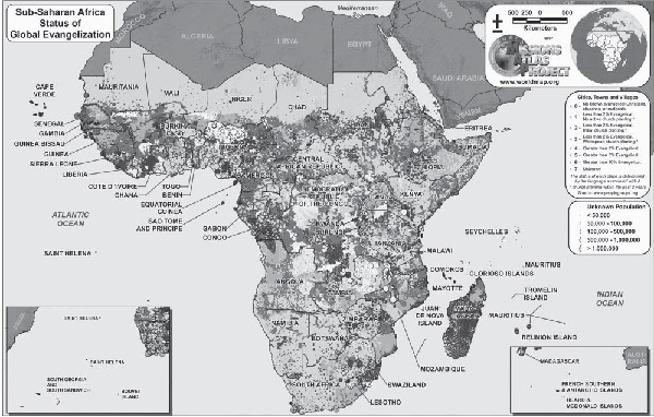 據World Map宣教機構估計,以族群而言,非南地區有2981個族群,其中1970個族群為未得之民,725族群尚未有福音工作,目前的非洲基督徒雖然有數億,應該屬於人數眾多的大族群,並偏向都市區。