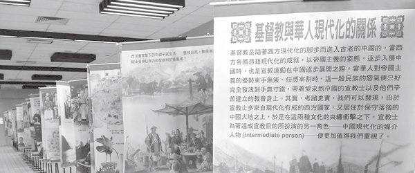 本次展览共展示187幅珍贵历史挂图,以五大主题贯穿:「在华宣教的开路先锋」、「马礼逊以后的宣教工作」、「基督教对华人的影响与贡献」、「献给无名的传道者」及「贯穿历史的呼召」。