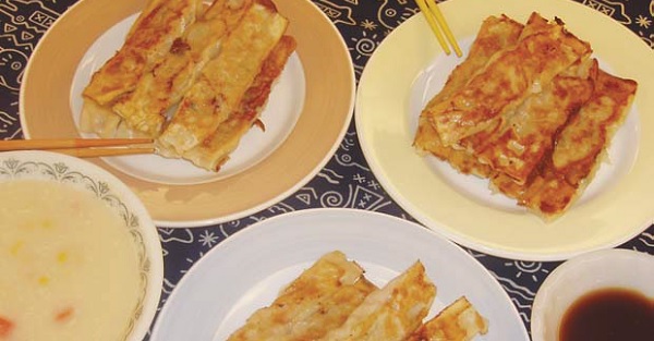 女婿不吃香菜,我特地调了另外一碗给他,并拿出一些饺子在平底锅里煎成香香的两面黄(洋人爱吃煎的),盛在盘里放在一旁。