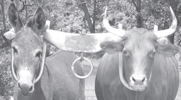 ▲牛驴有别,岂可同负一轭。图片来源:http://www.godandscience.org/doctrine/unequally_yoked.html