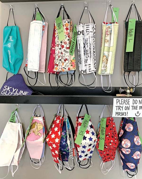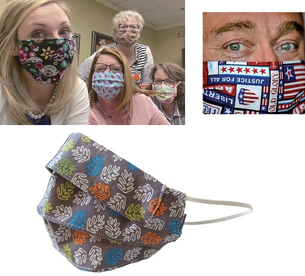 布口罩风主力推手之一的「乔安布庄」(JoAnn Fabrics),在网站上教人做口罩,口罩布料打折,有段时间缝纫机也半价。在尚可营业时,布庄收集做好的口罩,代顾客捐给医护人员。截至7月中旬,乔安宣布已做了超过两亿个口罩,大大鼓舞了巧手军团,似乎自己也为防疫做了一点贡献。店家不断推陈出新,当大众也需要戴口罩出入公共场所时,鼓励制做表现个人风格的口罩。铁粉可选用印有心爱球队标志的布料;时尚达人以亮片、水钻点缀;印上座右铭,鼓励自己也鼓励别人;星际大战、蝙蝠侠、超人等电影角色的布料也不遑多让。